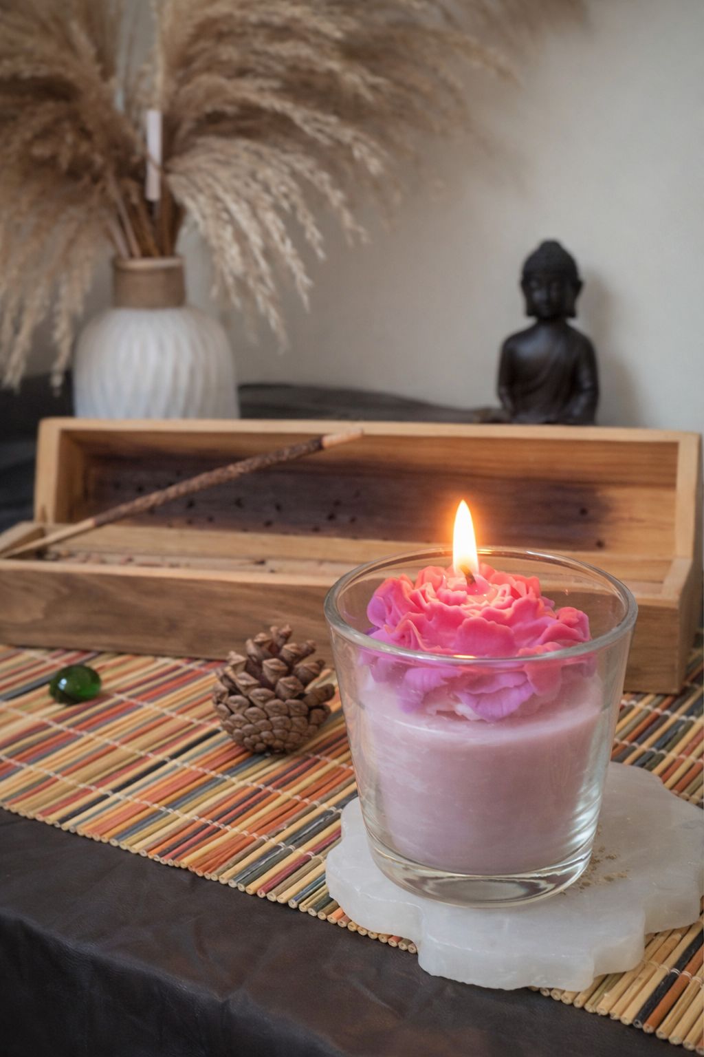 I felt the need to create something that truly represents me. A slow, quiet space, free from noise and expectations. In my room, I created a small corner made of incense, soft light, and a candle I crafted with my own hands.